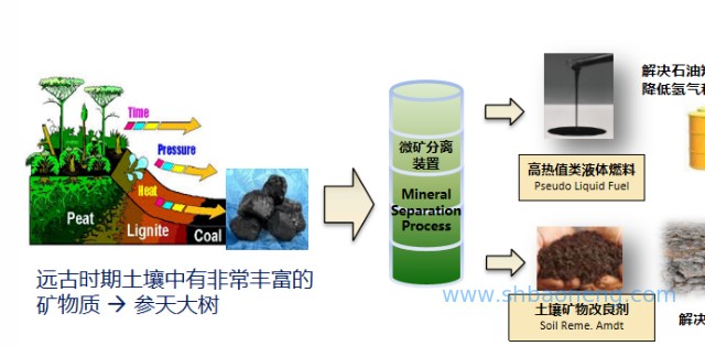 第二是利用煤炭領域的碳中和技術——微礦分離技術。在煤燃燒前,把可燃物及含污染物的礦物質分離開,制備低成本類液體燃料+土壤改良劑,源頭解決煤污染、濫用化肥及土壤生態問題,同時低成本生產甲醇、氫氣等高附加值化學品。